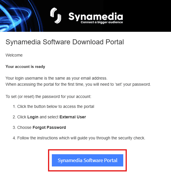 Note: To onboard a new user onto the software portal, the customer or customer team must connect with the engagement manager or the respective stakeholder in Synamedia.