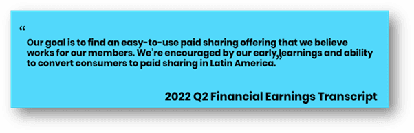 There is a balance to strike when dealing with sharers and borrowers among your subscribers. We have a lot to learn from Netflix’s approach to dealing with this where they have been intentional with their actions and always started with a small community of their most engaged base (to reduce the impact of churn) and incrementally introducing friction for stubborn borrowers who did not convert. Even with numerous trials, Netflix did have some early churn but having stayed the course, they are seeing the increase in revenue from the move into “paid sharing”.