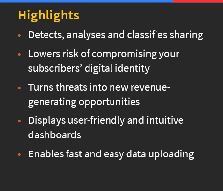 Credentials Sharing Insight (CSFEye) is a cloud-based user behavior analysis service enabling video streaming services to accurately identify credentials sharing activity allowing to trigger an appropriate response. CSFEye pinpoints and quantifies the threats that can lead to sharing activity throughout your user base. Once you understand the nature of the user behaviour that leads to sharing credentials, you can deliver the right response to the right user to reduce the impact on your business.